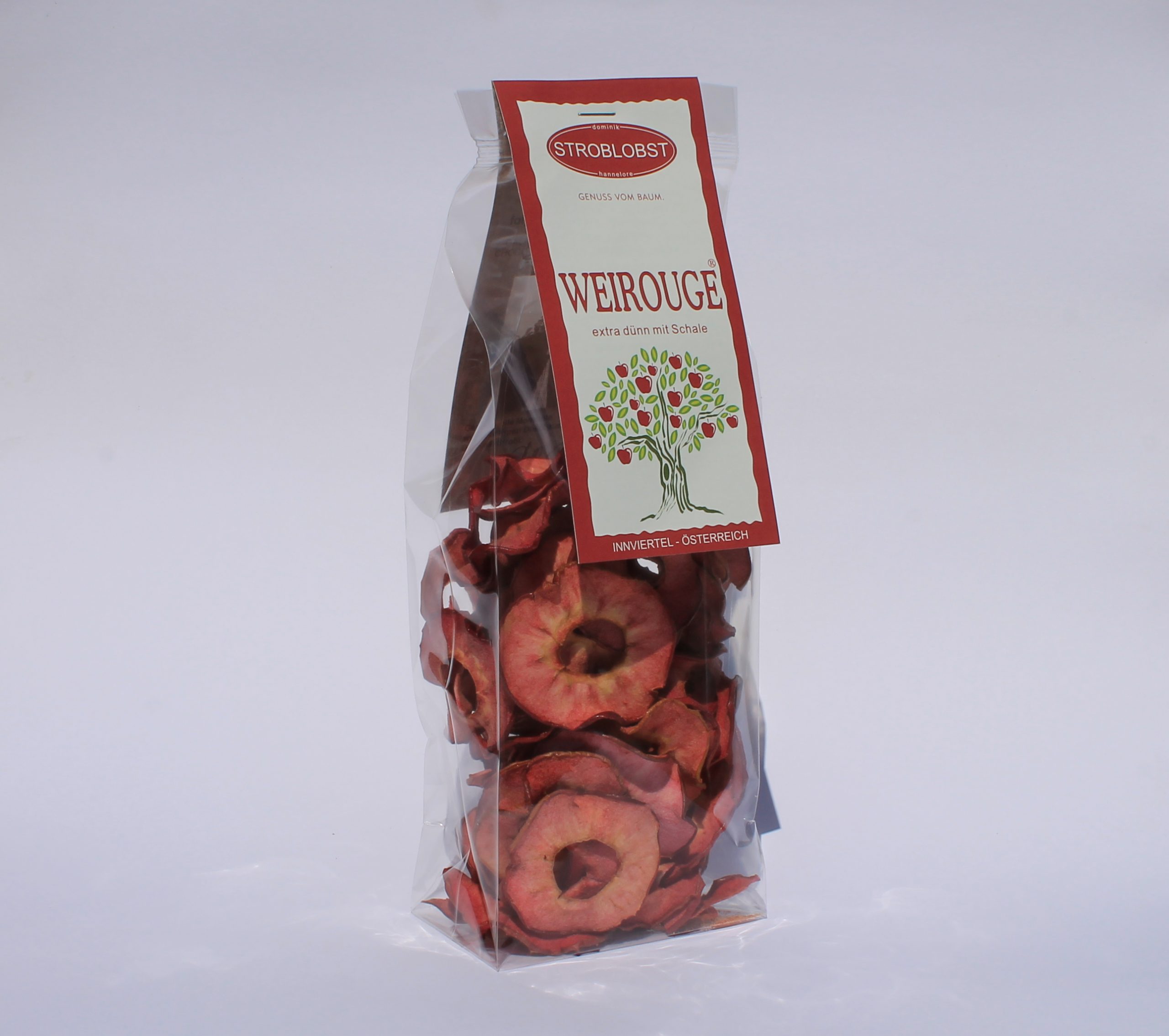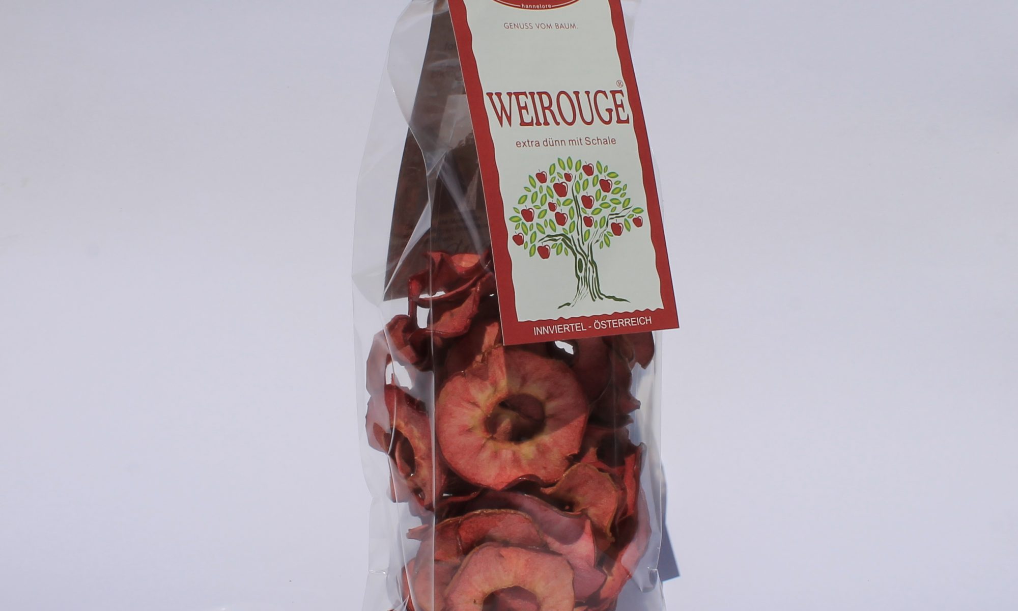 Für diese Spezialität verwenden wir von Hand gepflückte rotfleischige Tafeläpfel der Apfelsorte Weirouge®.